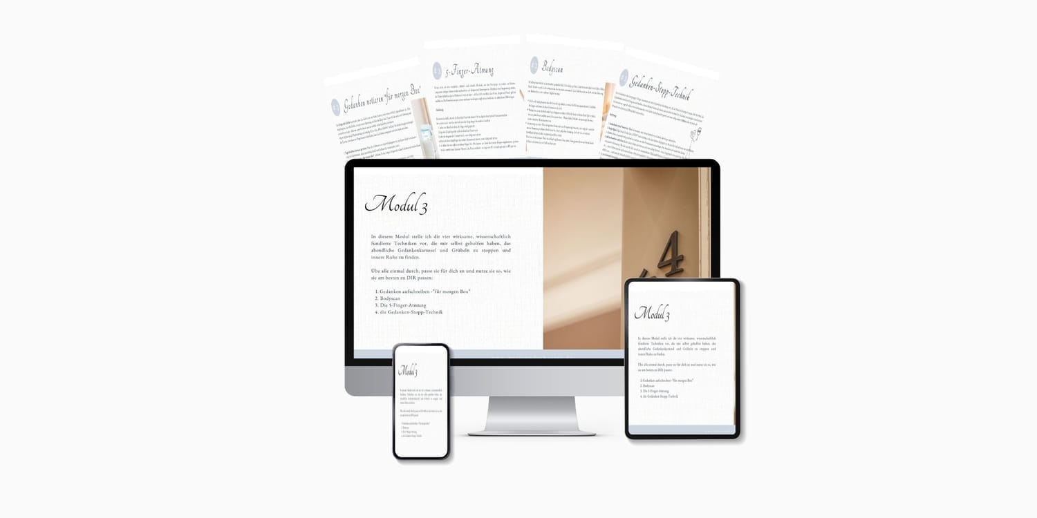 Das hängt ganz allein von dir ab. Bearbeite alles in Deinem Tempo, so wie es zu dir passt - ganz individuell nach deinen eigenen Kapazitäten, verfügbaren Ressourcen und persönlichen Bedürfnissen. Mach dir keinen Stress, wenn du das nicht immer schaffst. Es ist völlig in Ordnung, die Module über einen längeren Zeitraum verteilt zu machen. Lass dir Zeit für die Umsetzung und das Verinnerlichen. Es ist ein vollkommen stressfreies Training.
